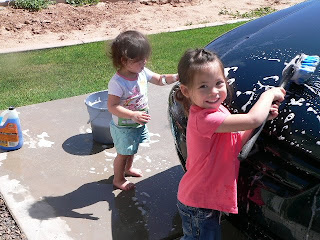 Well, Rylan's car got dirty...again. Apparently Uncle Vic likes clean looking vehicles, so he took it upon himself to clean the Honda. Aubrey wanted to help. She has become quite the little copy-cat. Since Uncle "Wiffer" (Victor) took his shirt off, Aubrey had remove hers as well, so there was little nude dude Aubrey with her shirt off cleaning the car with bigger nude dude Uncle Wiffer. Thanks for the clean car, guys!